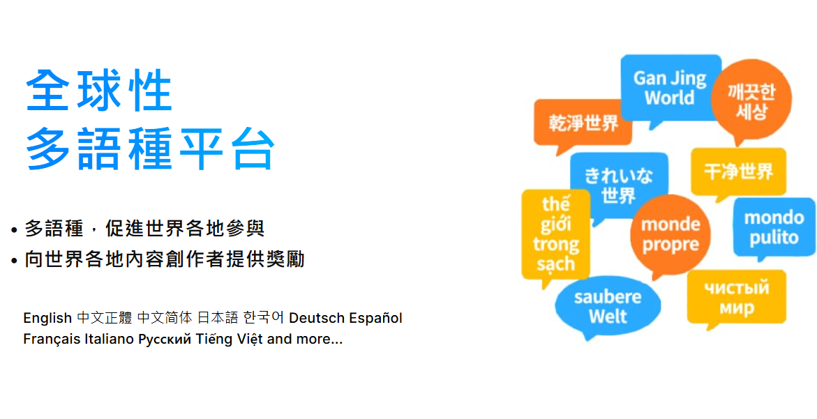 干净世界提供各种功能,让用家创作内容(长视频、短视频、文章、帖文),创建主题标签活动,甚至发起实时直播、投票和新话题。用户可以打造自己的专属平台和社群,创造更紧密的人际关系。
